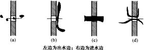 大多数工业全自动滤水器采用冲压孔钢板网作为过滤部件。水流通过网板的流态如图2所示。由于通过小孔将过流面积突然减少,流速会突然加大,在小孔的进口有明显的局部流动阻力和局部压力损失。由于有网孔的存在,水流中夹携的污物在进入孔之前被截留,其过程较为复杂。
